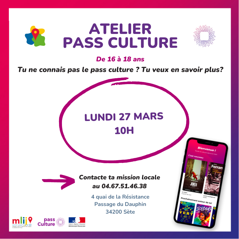 Inscris toi vite en appelant le 04.67.51.46.38 , en te présentant à l’accueil de la Mission Locale de Sète ou en contactant ton conseiller MLIJ.