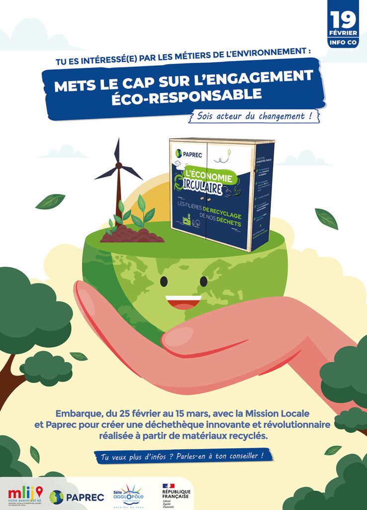 La Mission Locale d’Insertion des Jeunes du Bassin de Thau – MLI et Paprec Group te proposent de participer à la création d’une déchethèque innovante et révolutionnaire, du 25 février au 15 mars !