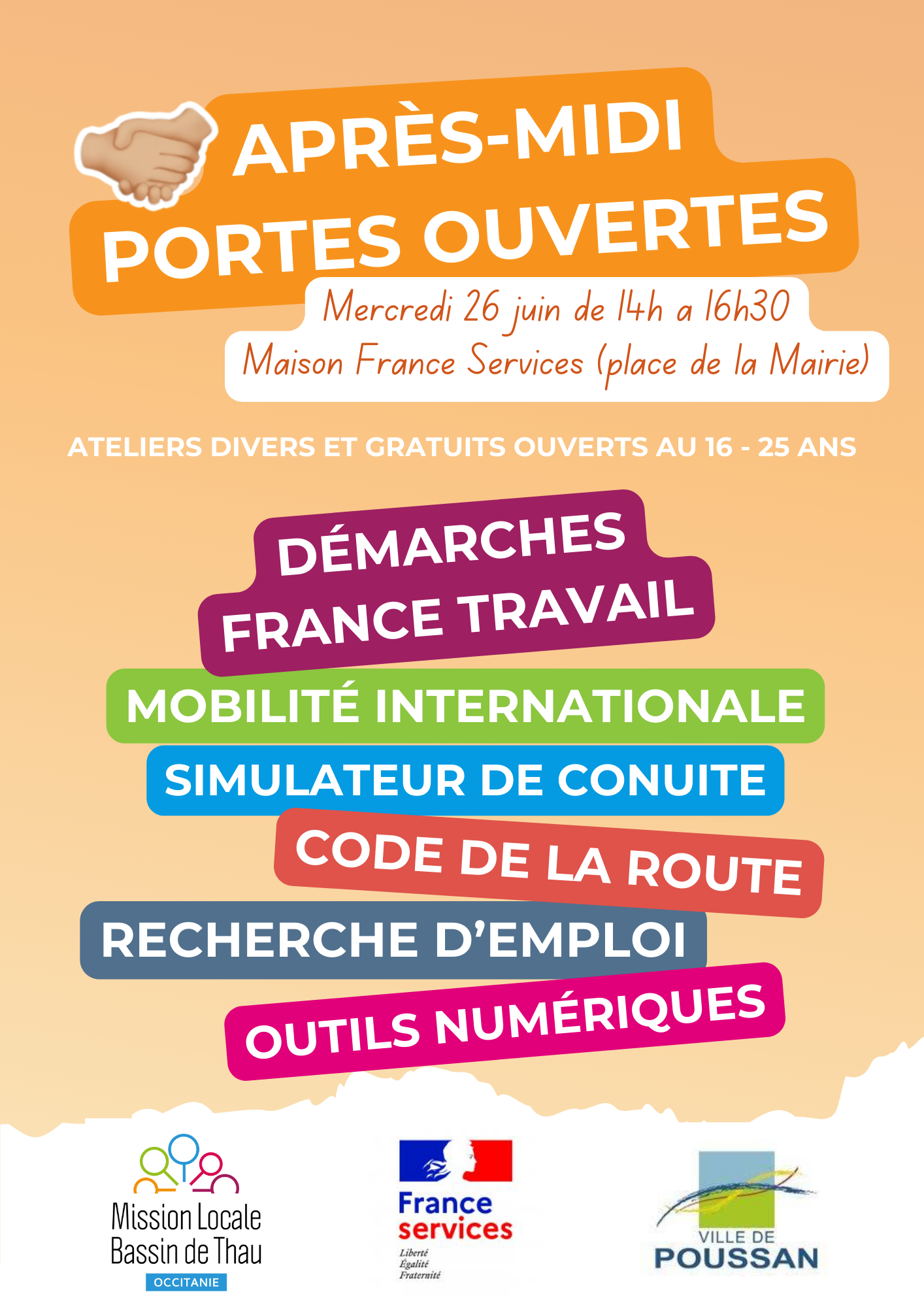 La Mission Locale du Bassin de Thau et la Maison France Services de Poussan s’associent pour proposer un événement en faveur des jeunes de 16 à 25 ans.