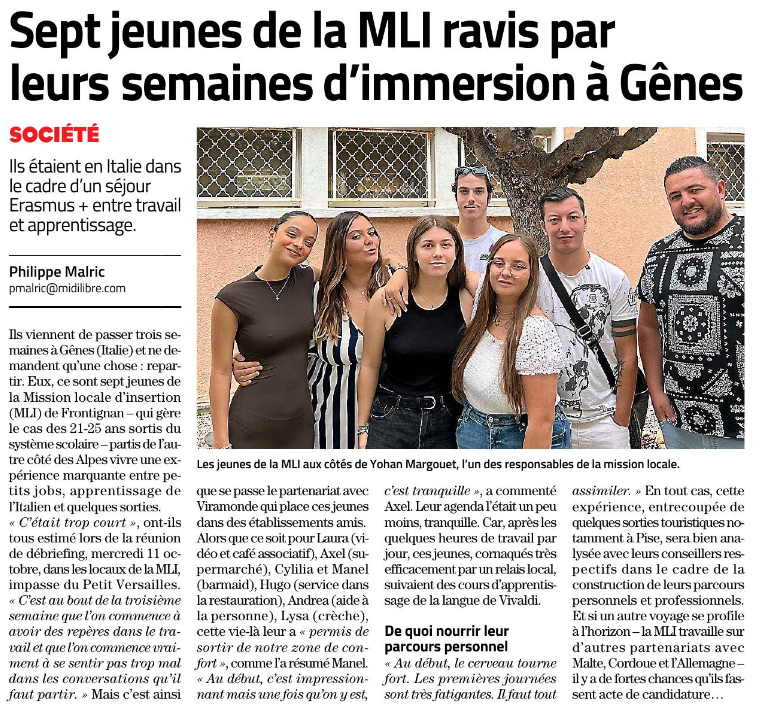Sept jeunes de la MLI ravis par leurs semaines d’immersion à Gênes